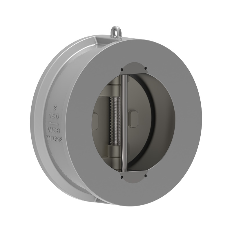Wenn sich die Durchflussrate verlangsamt, nähert sich die Scheibe unter der Wirkung der Reaktionskraft der Torsionsfeder allmählich dem Ventilsitz und tritt in die langsame Schließphase des Ventils ein. Wenn die Flüssigkeit zurückfließt, wirken ihre Kraft auf die Scheibe und die Reaktionskraft der Torsionsfeder zusammen, und der Schließvorgang der Scheibe erhöht sich entsprechend, sodass die Schnellschließphase erreicht wird. Der Zweck dieser Konstruktion besteht darin, das Phänomen des Wasserschlags zu reduzieren, die Schäden durch Wasserschläge zu verringern und die Lebensdauer besser zu verlängern. Beim Schließen sorgt der Federkraftpunkt dafür, dass sich zuerst die Oberseite der Scheibe schließt, wodurch verhindert wird, dass die Wurzel beißt, und die Haltbarkeit der Ventildichtfläche verbessert wird.